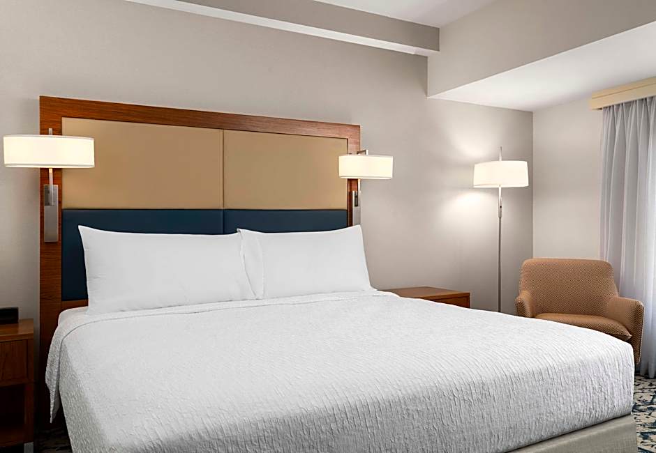 This king suite features a separate bedroom and a separate living area that has a sofa bed. It also has a fully equipped kitchen.
